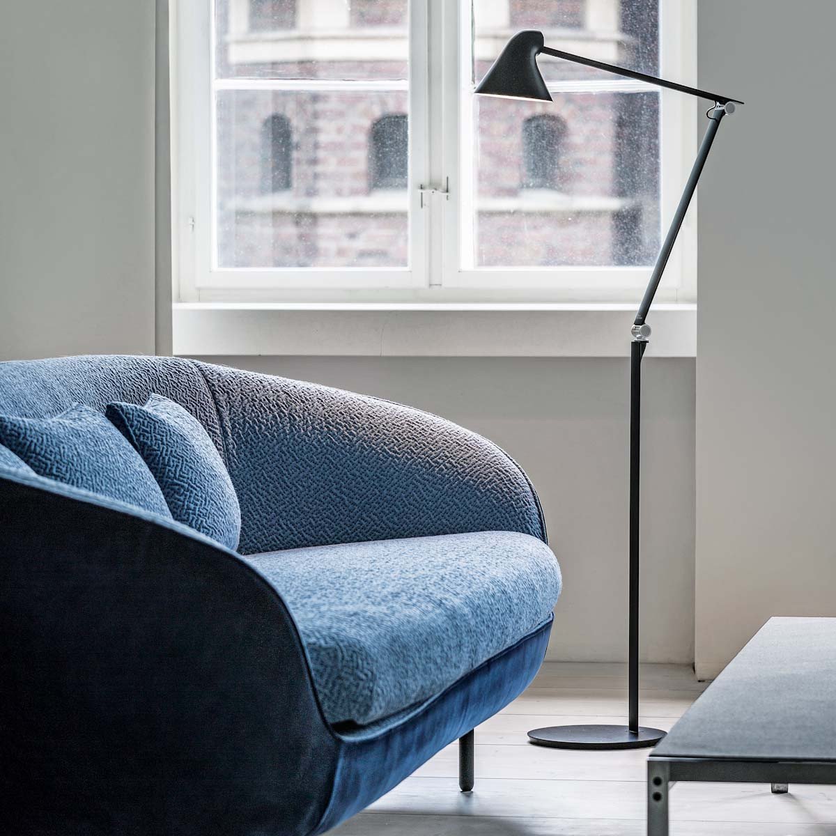 This NJP Floor Lamp features a long adjustable arm that provides soothing light anywhere in your home. NJP resembles the classic anglepoise lamp, but boasts smart new functions for work or relaxation. Available in two light intensities—one for directed work lighting (3000K) and one for dimmed, ambient lighting (2700K)—the NJP Floor Lamp's flexible head and arms provide exceptional adjustability.