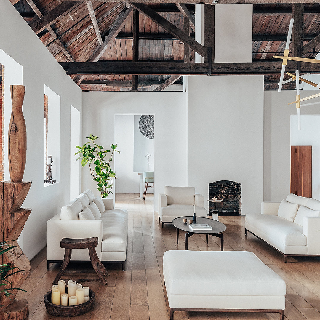 Named after the traditional Chinese concept of a "small sleep" at noon, the Qi Sofa draws inspiration from the Luohan Chuang - a dual - purpose bench for sitting and sleeping. Blending modern versatility with the minimal style of Jean-Michel Frank, it combines a wooden structural base with a padded platform and cushions for comfort in both seated and reclined positions.