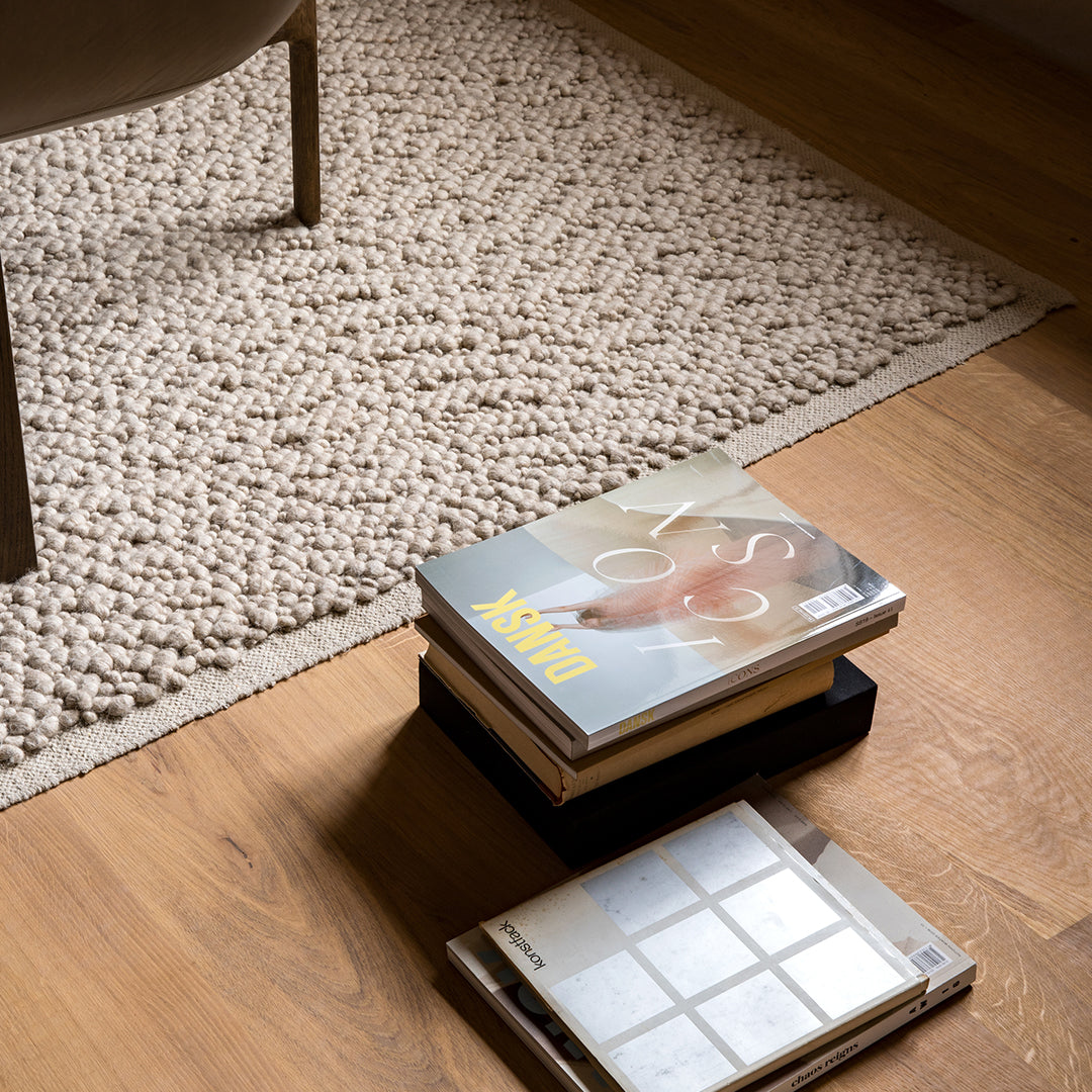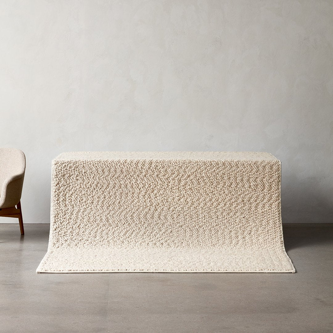 A well-designed product starts with the material, according to designer Nina Bruun, who has designed Gravel Rug for MENU, a natural wool rug with a soft handle. Using nature as the starting point, the design focuses on wool and its inherent qualities. Forgoing color dyeing in favor of natural fibers in tonal hues to create unique sense of depth, it complements any space, private or public, with its tactile expression.