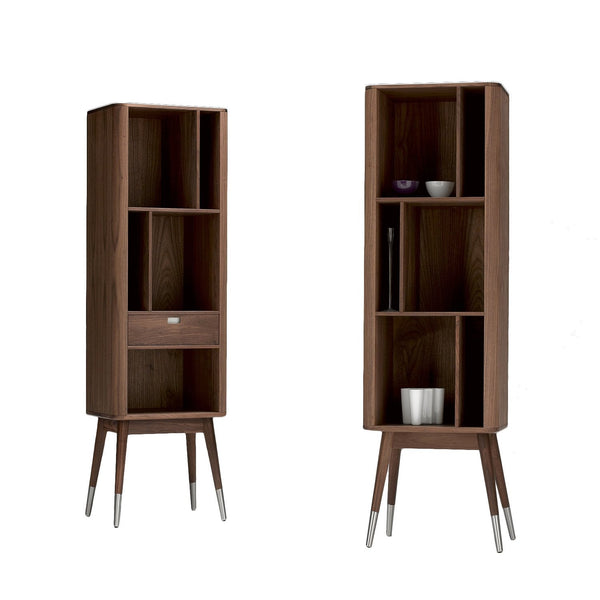Cabinet with storage for the beautiful things you love. White Corian on the top. Shelves can be mounted horizontally and vertically and it is possible to build in a drawer. The pointy turned legs are beautifully finished with stainless steel.