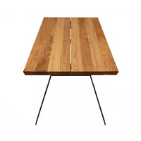 The Plank table is made in 5 different sizes. The table top is made of solid wood in 40 mm/1.6 in thickness. The legs are made of oil burned steel.