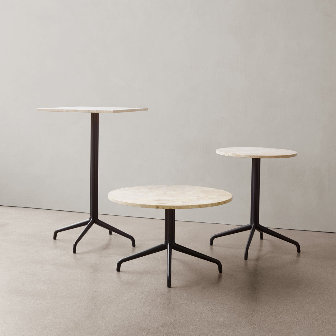 The clover-shaped column base is constructed in steel and aluminum in a black powder coated finish, with dining, counter and bars to fit numerous needs in homes, workplaces, cafes, lobbies, the possibilities are endless. Mix and match bases and tabletops to create your ideal pairing.