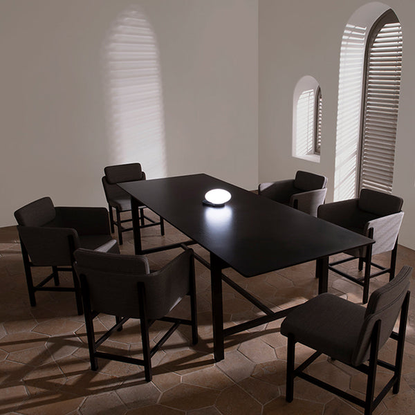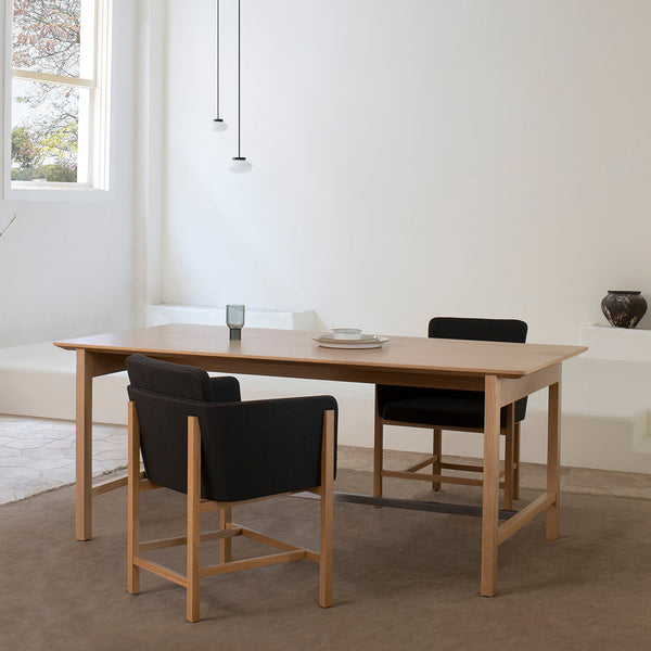 The result is a full range of Aya furniture for the perfect dining and socializing setting. Comfort and sturdy durability lie at its core, which is complimented by the elegant appearance. The first Aya collection drop comprises a fully upholstered dining chair with armrest, a dining chair without armrests, and two dimensions of dining tables: 1,800 cm and 2,400 cm in length. The design of the tables mirrors the structure and details of the chair frame.
