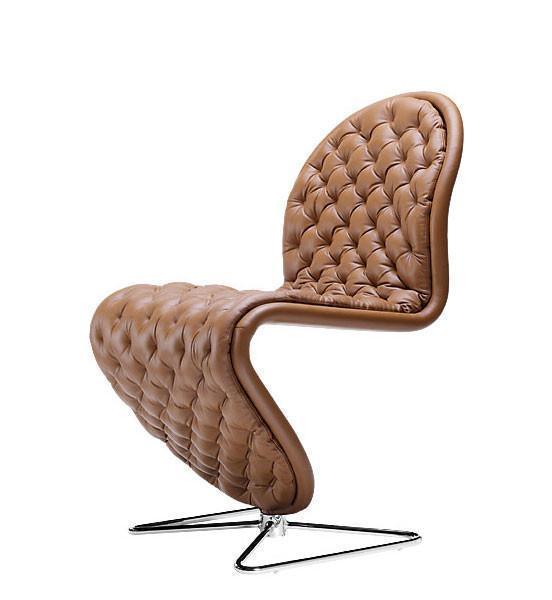 Fully upholstered S-shaped swivel dining chair on a brushed aluminium or chrome plated steel butterfly base.
