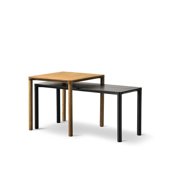 Piloti is a series of solid oak side tables. The subtle detailing of the table top creates the impression of a single line, floating between four delicate legs. The tables are supplied in two heights and can be combined as a nest.