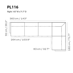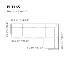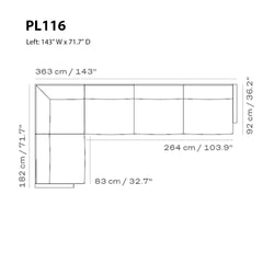 - Variant: Christianshavn / Matt Polished Stainless Steel / PL116S (Left): 125.2" W x 66.1" D