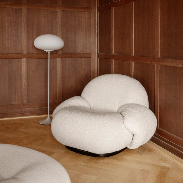 The GUBI Pacha Lounge Chair with Armrests realizes Pierre Paulin's visionary concept of "sitting on clouds" while adding supportive elements that enhance both function and comfort. This sophisticated variation of the iconic 1975 design, once ahead of its time and now perfectly aligned with contemporary sensibilities, preserves the revolutionary essence of Paulin's work while offering additional ergonomic benefits.