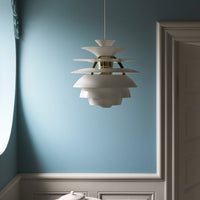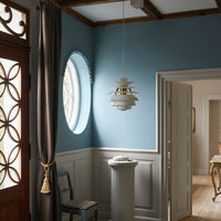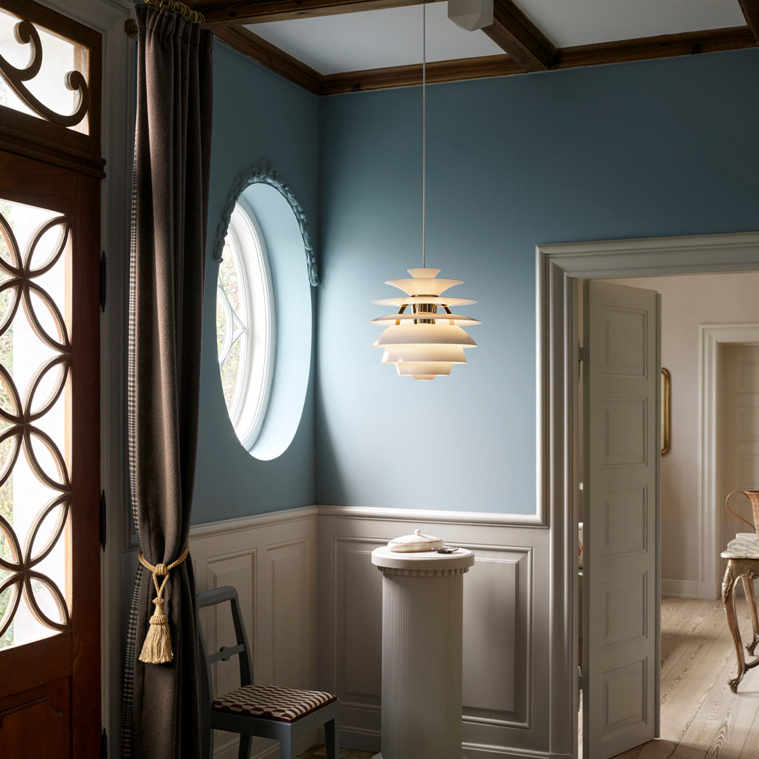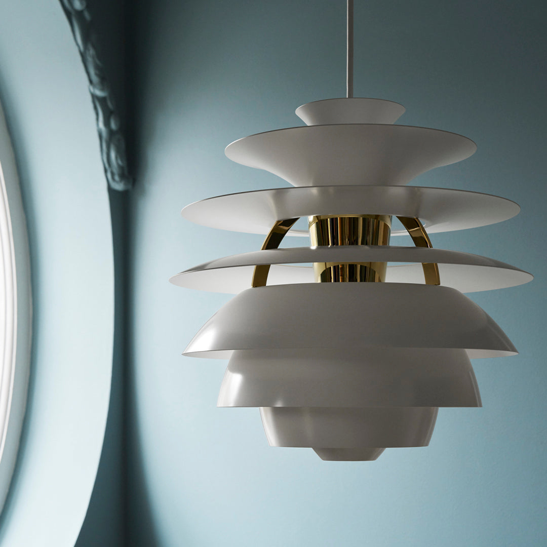 Poul Henningsen designed his first lights back in 1925/1926 for an exhibition in Paris. His work with Louis Poulsen continued right up until his death in 1967. Throughout his life, PH sought to create glare-free lighting; aiming to direct light where it was most needed, and creating soft shadows while using incandescent bulbs as a light source. Poul Henningsen designed Snowball in 1958 and it was exhibited together with PH 5 at the Danish Museum of Decorative Art. However, Snowball received no particular attention on this occasion, and was only re-launched and manufactured from 1983.