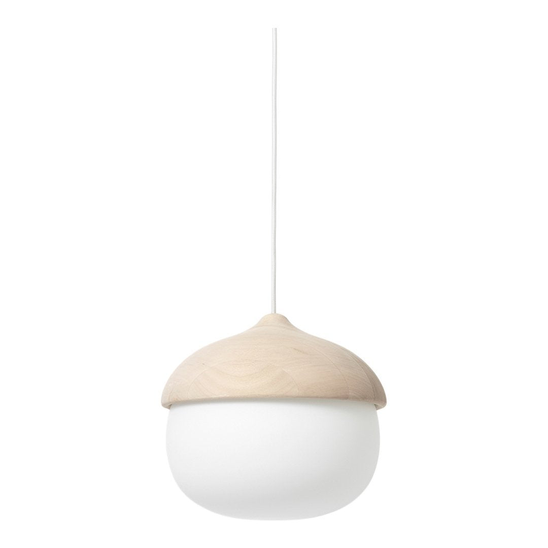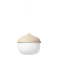 The Terho lamp is designed by the Finnish designer Maija Puoskari. Terho means acorn in Finnish and the name simply refers to the organic and appealing shape of acorns found in nature. The enchanting color of alder wood (FSC certified) and the hand blown white glass opal are an unique combination of design seldomly seen. The Terho lamp can be used individually or as a collective of different sizes in a small group.