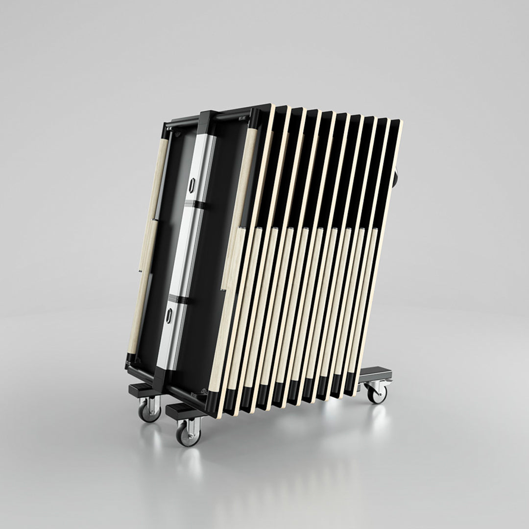 The trolley for 10 Tube folding tables is extremely stable and designed with high-quality wheels.