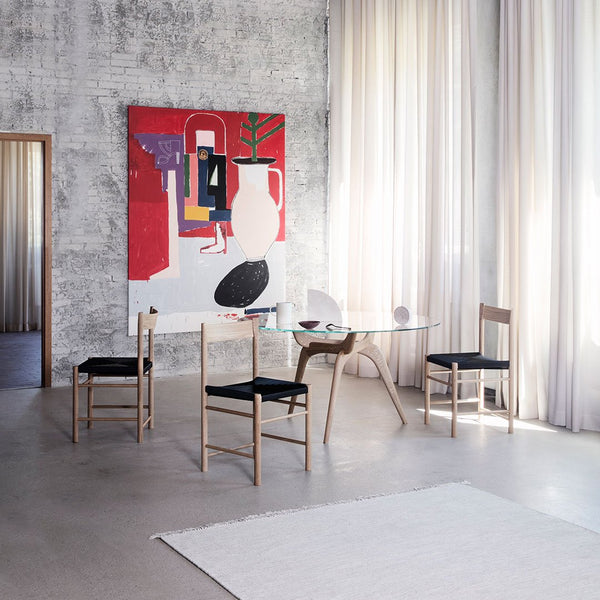 "I work in the borderland between art and design, form and function, and Jonas recognized the values and philosophy of Brdr. Kruger in my aspiration to explore archetypes and materials with an open mind. Together we have reinterpreted the design of the shaker chair, balancing tradition and modernity, and turning a conceptual artwork into a comfortable, usable chair. The F chair is a celebration of old crafts. It is born from innumerable prototypes and hands-on work at Brdr. Kruger’s workshop, where we fine-tuned the simple construction to gain the right expression and feel.â€� - Rasmus Baekkel Fex, Designer.
