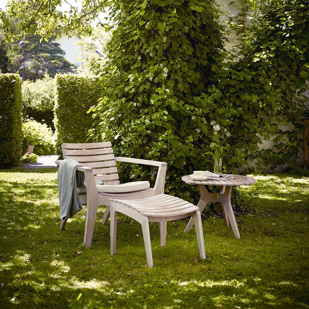 The Regatta Lounge Table matches the entire Regatta collection. It is made of solid teak slats and offers a sturdy foundation with its solid frame, yet it is a light-and-airy, elegant piece of furniture on the patio.