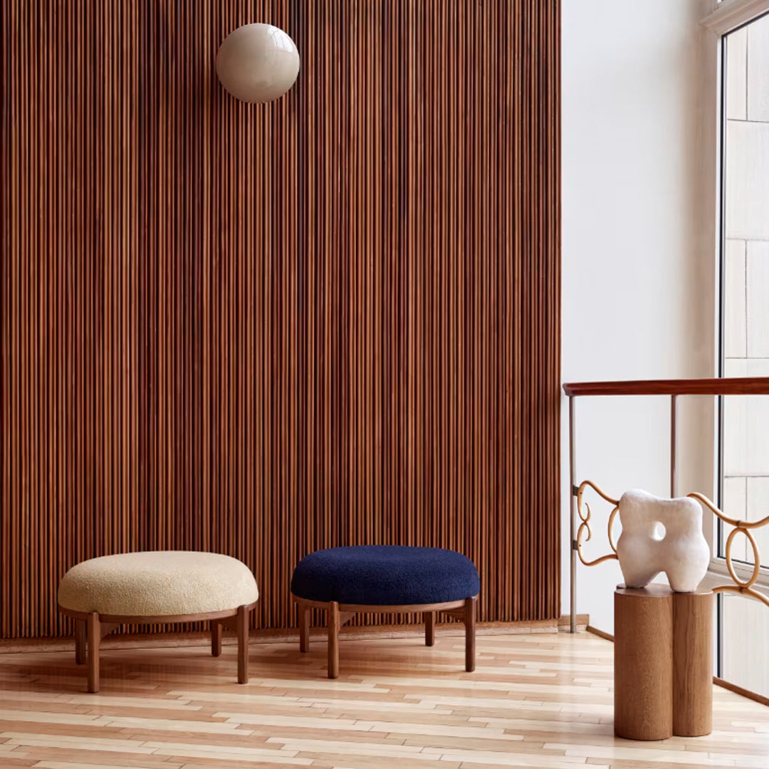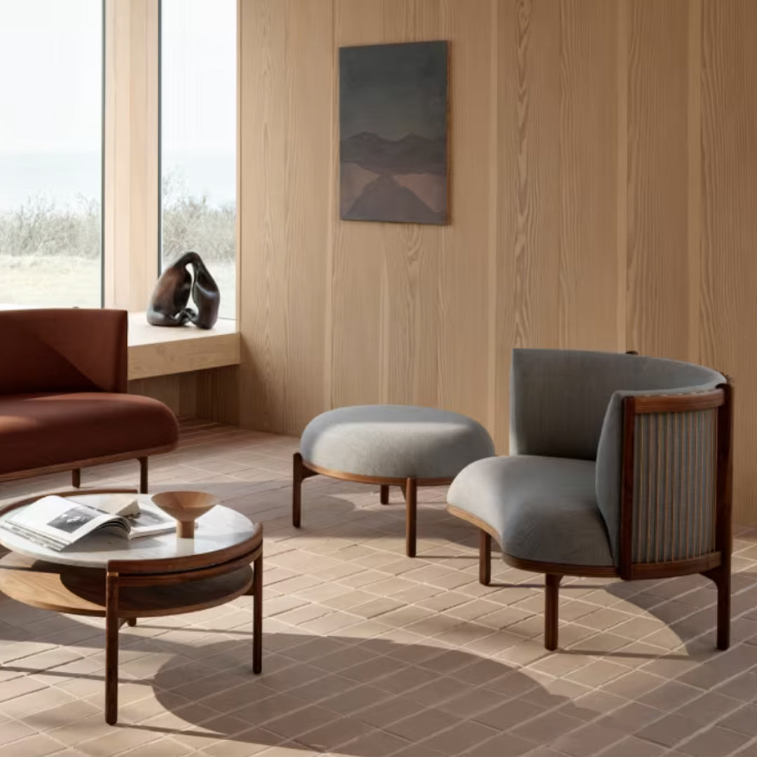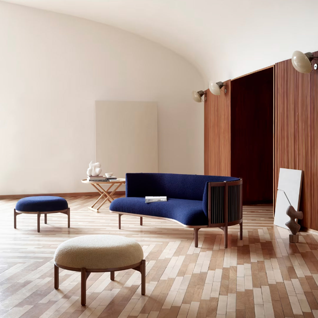Sideways Footstool is designed by Rikke Frost. With organic shapes and an elegant mix of materials, it is a characterful addition to the Sideways Sofa. The frame in FSC-certified oak is combined with soft textile cover. The footstool can stand alone or be combined with other furniture, and it fits into both private homes and public spaces. Available in several variants.