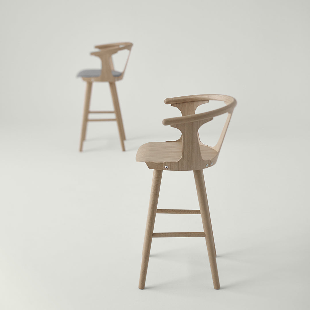 For Kallio, "The bar stool uses woodturning and special veneer techniques in a way that makes the structure sturdy yet surprisingly light. So it blends into a space without taking up too much space. I wanted the bar stool to fit comfortably into any setting, just like the person sitting in it.