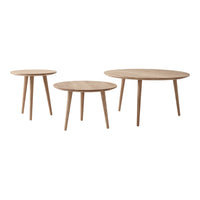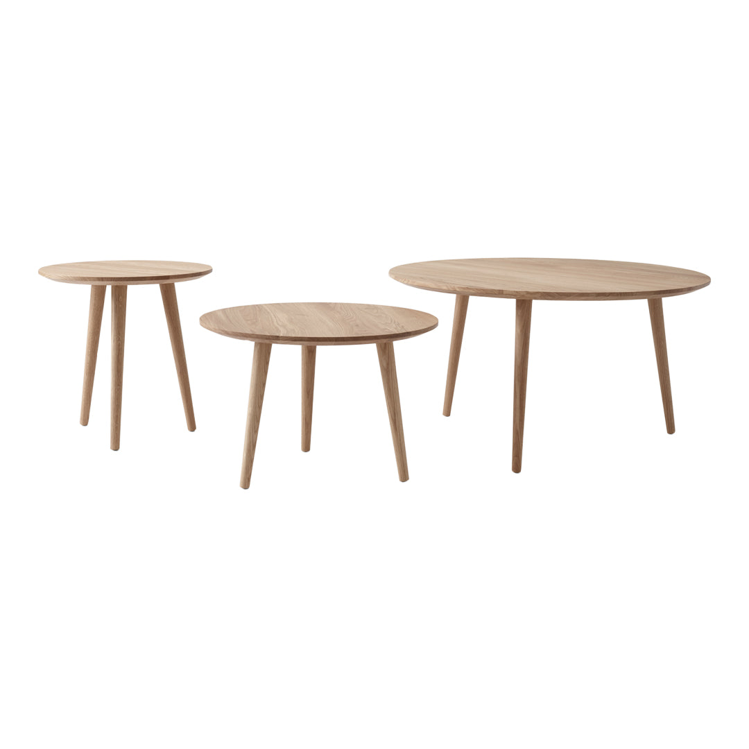 Sitting within the larger In Between series, this lounge table carefully echoes many aspects of the In Between chair, from its gentle curvature to the outward splay of its legs. It is available in two heights and comes in three finishes: black lacquered oak; white oiled oak; and smoked oiled oak.