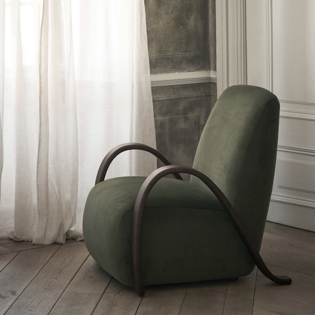 The Buur Lounge Chair effortlessly combines comfort and elegance, featuring a luxuriously cushioned seat and backrest. Designed in collaboration with Says Who, the chair has distinctive, curved armrests crafted from FSC™ certified oak that beautifully mimic the natural flow, enhancing its rounded design. With its smooth construction, the Buur Lounge Chair invites you to indulge in its plush upholstery and experience a truly enveloping embrace. With its vintage-inspired aesthetic, the Buur Lounge Chair serves as a stunning statement piece in any room.