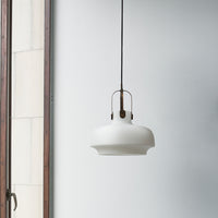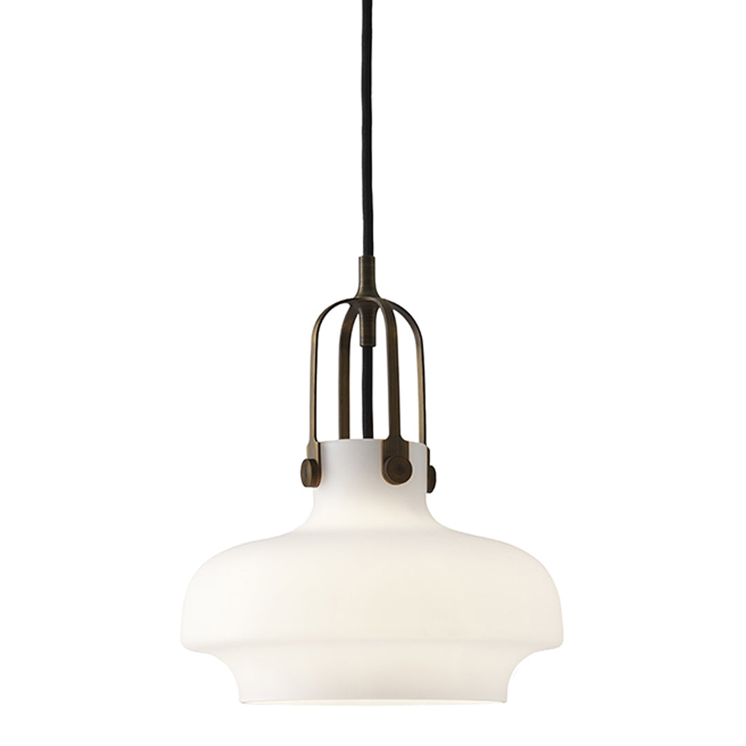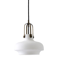 The shade is spun into shape from a single piece of metal and matte lacquered. The suspension is made from milled and laser cut steel which undergoes a special plating process to produce the desired matte finish to compliment the shade. Opal version: The shade is made from mouth-blown opal glass. The suspension is made from milled and laser cut bronzed brass.