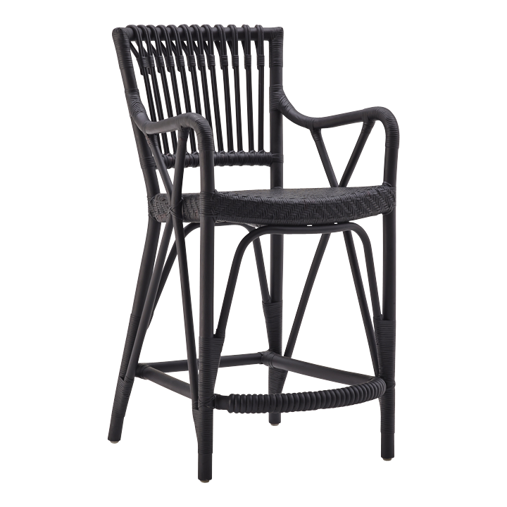 The Blues Counter Stool has a classic style with remarkable detail and craftsmanship. Inspired by sketches from the 1950s and 1960s, the counter stool adds a midcentury aesthetic to any breakfast or cocktail bar. It is handcrafted from natural rattan and is built to last as long as its timeless design.