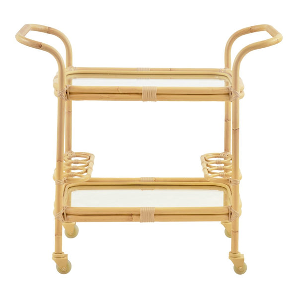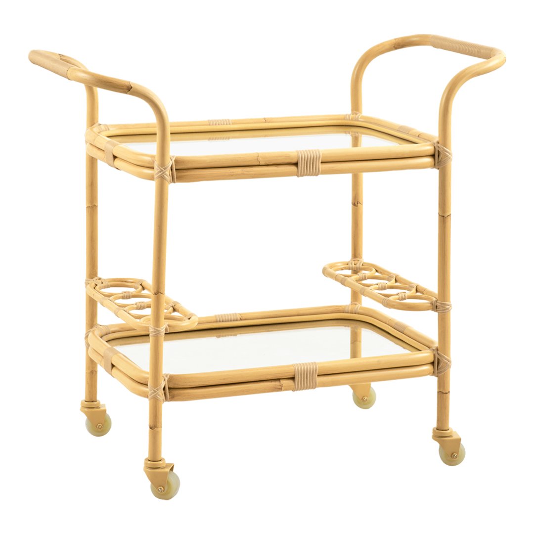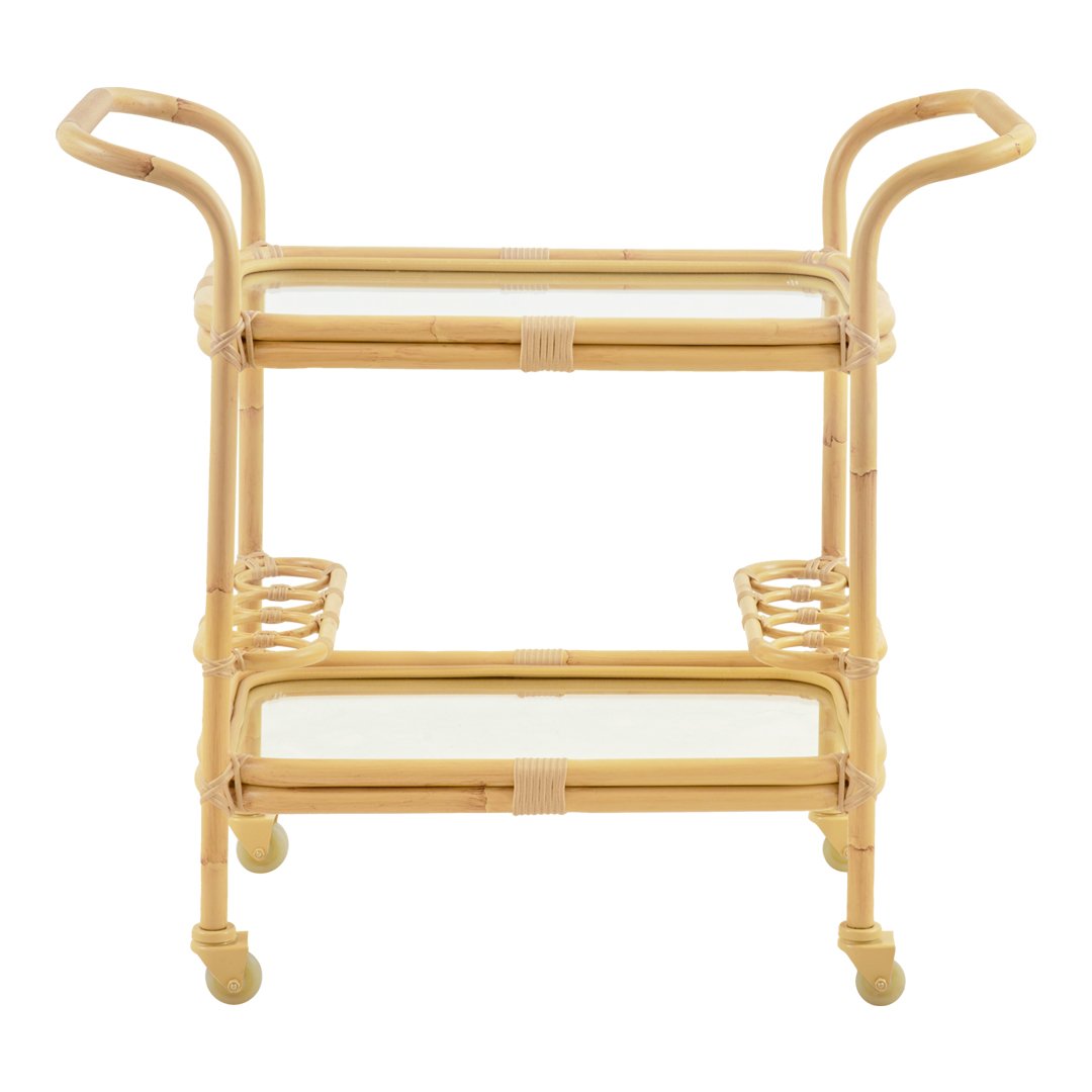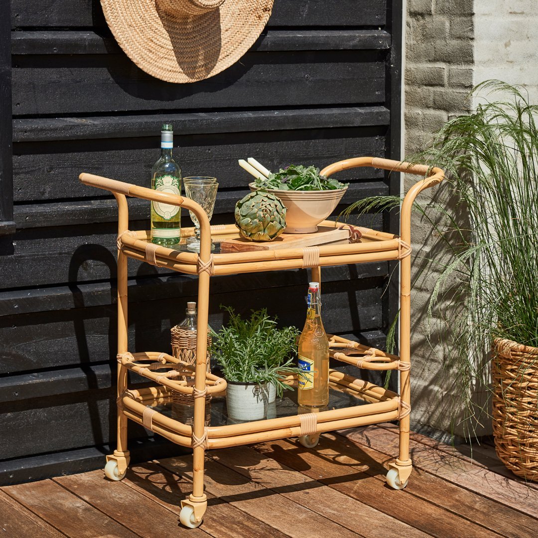 The Carlo Bar Trolley sparks both conversations and celebrations. Inspired by sketches from the 1950s and 1960s, this classic bar cart can be rolled out of sight, but you won't want to hide it. It is handcrafted from natural rattan and is built to last as long as its timeless design.