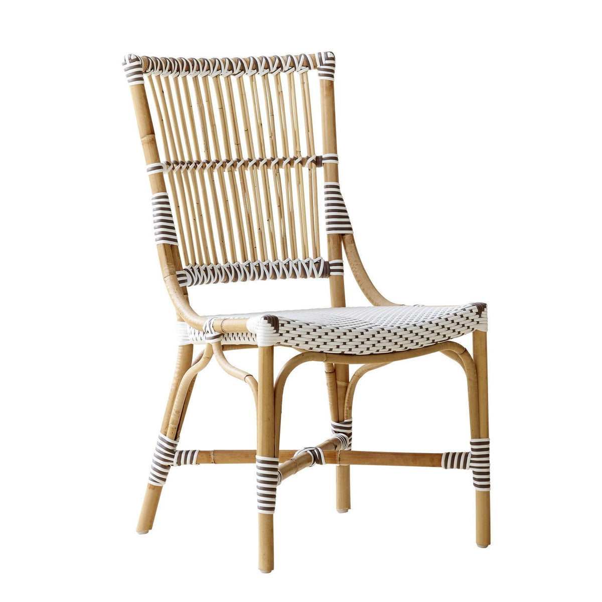 The Monique Side Chair elegantly highlights the all-natural rattan material with classic lines, blended with striking woven accents for stylish impact. Designed for indoor or covered outdoor use, the chair's rattan frame will patina to a lovely light gray finish over time. If the original natural rattan look is desired, rub with linseed oil.