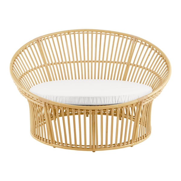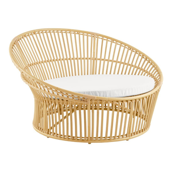 Olympia lounge chair, also called "love nest" is fine and elegant. Olympia is designed by Sika-Design and is made in alu-rattan and ArtFibre materials. Alu-Rattan is weatherproof powder coated aluminum and ArtFibre is artificial fibers made of maintenance-free polyethylene that can withstand the sun's UV radiation. Due to the weatherproof materials, the furniture can withstand being outside throughout the year without maintenance. The fine bindings in the seat and back are made on a frame of aluminum of skilled wicker workers. Olympia contributes a naturally beautiful element in any outdoor environment. With the fine open wicker and the beautiful curved back, the love nest has a very elegant and aesthetic expression. The Olympia is a Danish design, made by Sika-Design. You can choose to buy a cushion in optional fabric, manufactured in our Danish sewing room. We also offer to sew cushions in the customer's own fabric, please contact us to get enlightened about material use.