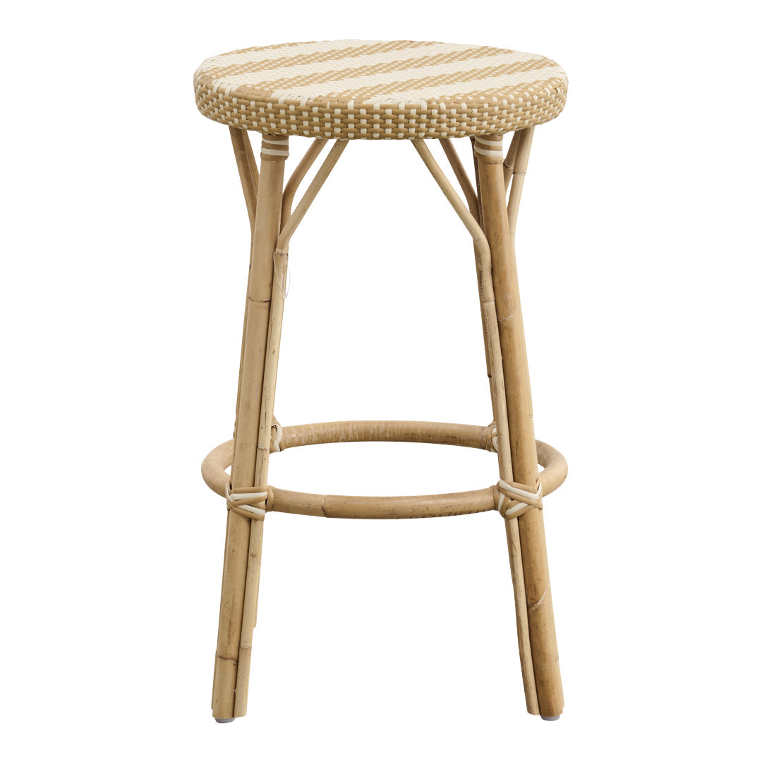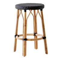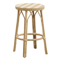 The Simone Counter Stool is the perfect height for a kitchen island and also makes for versatile outdoor seating, adding an air of unassuming refinement wherever it is used. This stool is maintenance-free, crafted from all-natural rattan and polystrand bindings. Designed for indoor or covered outdoor use, the stool's rattan frame will patina to a lovely light gray finish over time. If the original natural rattan look is desired, rub with linseed oil.