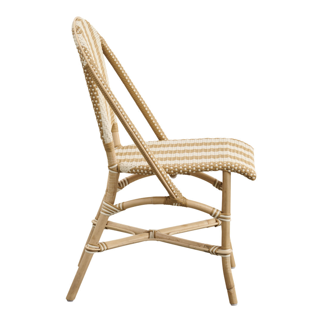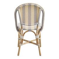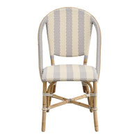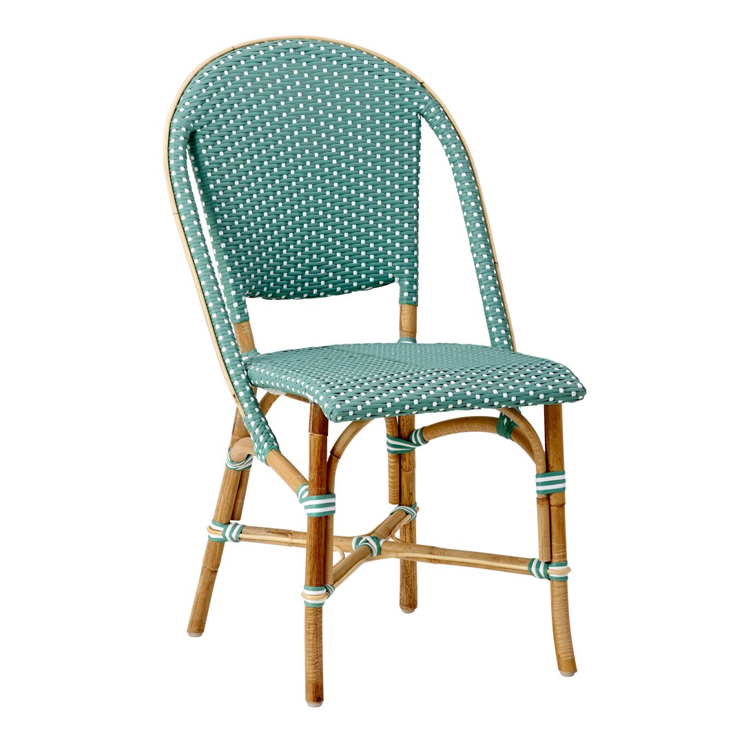 The Sofie Side Chair is a modern update of a classic Paris bistro chair and can be found in upper end cafes, brasseries, bistros and restaurants in historical European cities and capitals throughout the world. This colorful chair is a favorite among restaurants and cafes because of its durability and how well it stacks. The Sofie side chair is handmade using the finest Malacca cane rattan, stainless hardware, and our exclusive synthetic ArtFibre™ that can withstand rugged use. Each chair is meticulously handcrafted using the century-old method perfected by skilled Danish cane-makers in the 1970s. This technique creates signature organic marks by bending each piece of rattan into shape. Designed for indoor or covered outdoor use, the chair's rattan frame will patina to a lovely light gray finish over time. If the original natural rattan look is desired, rub with linseed oil.
