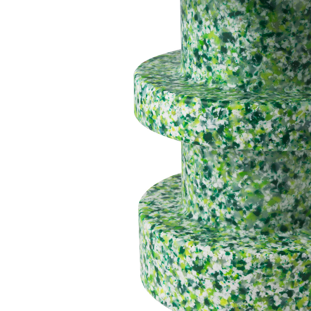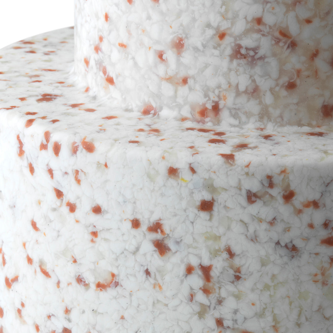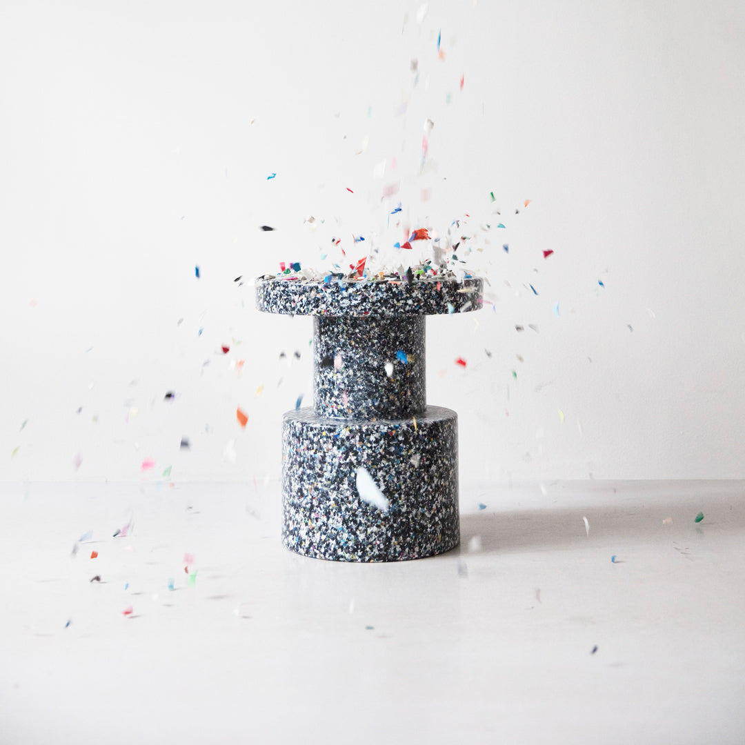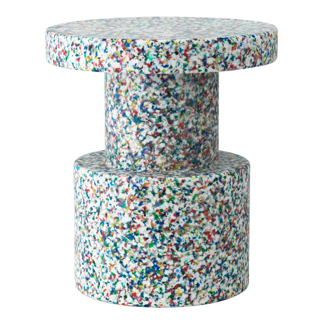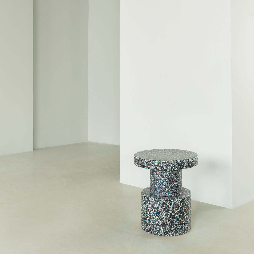 The Bit can be used as a seat, table or to display on its own. The straightforward, utilitarian look contrasts with the pixelated surface made up of small bits of 100% recycled household and industrial plastic.