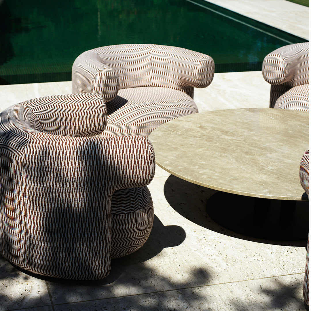 Simon Legald’s iconic, burrata-inspired Burra Lounge Chair now brings its signature comfort and sculptural elegance to the great outdoors. Designed for durability, this new outdoor version retains the enveloping embrace and organic silhouette of the original while incorporating materials crafted for open-air environments.