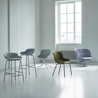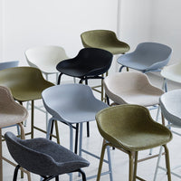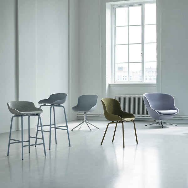 Inspired by Danish hygge, designer Simon Legald has created the Hyg furniture series. When the series was introduced in 2018, it consisted of a 2-seater sofa, lounge chairs and a footstool. In 2020, the range expands with a chair and barstool that share the characteristics of the lounge series: the hearty, organic curves designed with a focus on sublime comfort.