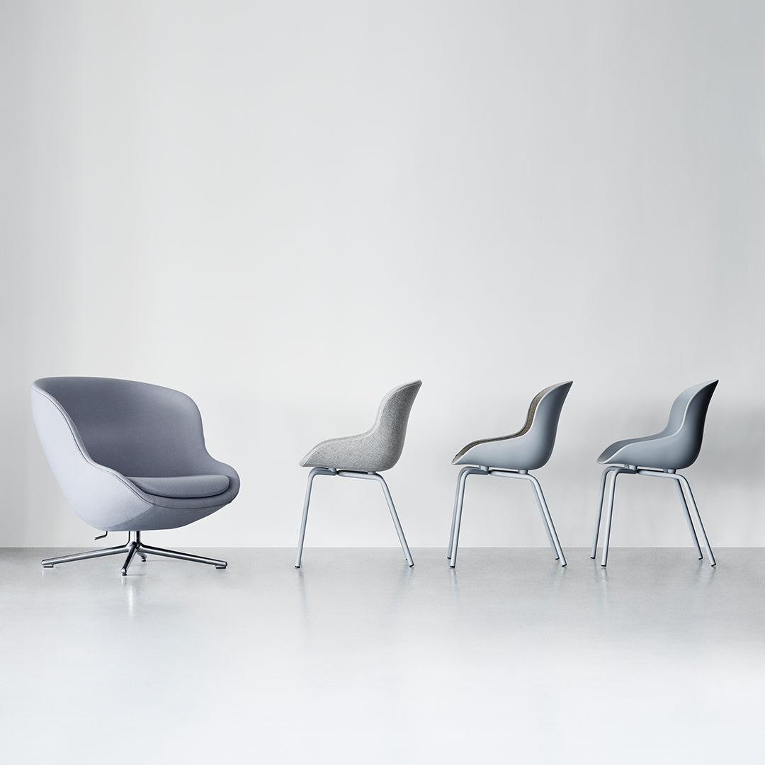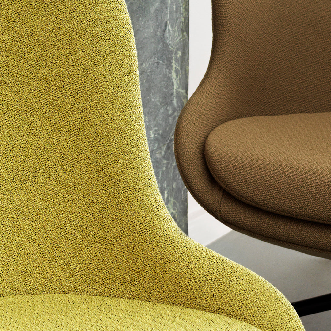 With Hyg, Simon Legald has designed an exclusive range, in which soft lines and encircling contours create a cozy and pleasant space. Hyg is made for hygge. The series, which consists of a sofa, armchairs and footstool, is like a warm and heartfelt embrace of shape. The ample silhouette radiates a primary organic purity. Its voluminous form is offset by a narrow contour, which hones and refines its expression. The high sides lightly shield off the room, while a broad seat makes it possible to assume a wide range of relaxed seating postures.
