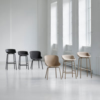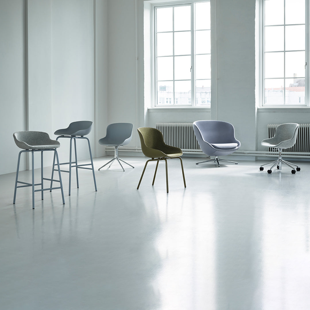 Inspired by Danish hygge, designer Simon Legald has created the Hyg furniture series. When the series was introduced in 2018, it consisted of a 2-seater sofa, lounge chairs and a footstool. In 2020, the range expands with a chair and barstool that share the characteristics of the lounge series: the hearty, organic curves designed with a focus on sublime comfort.