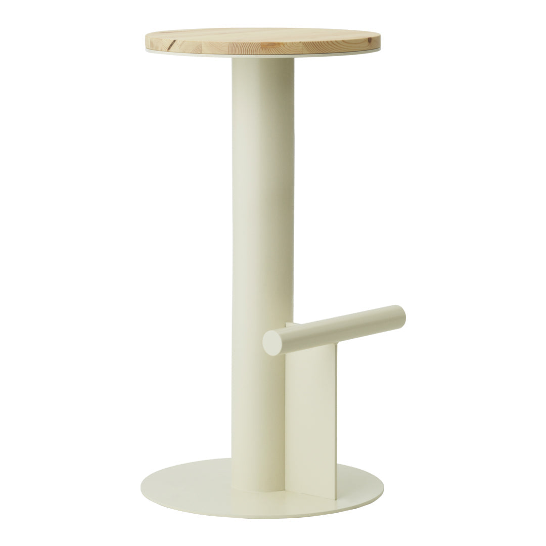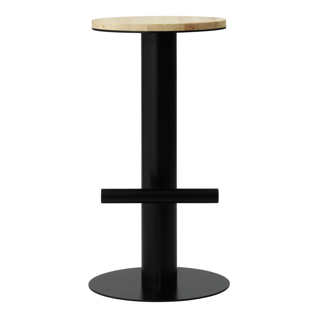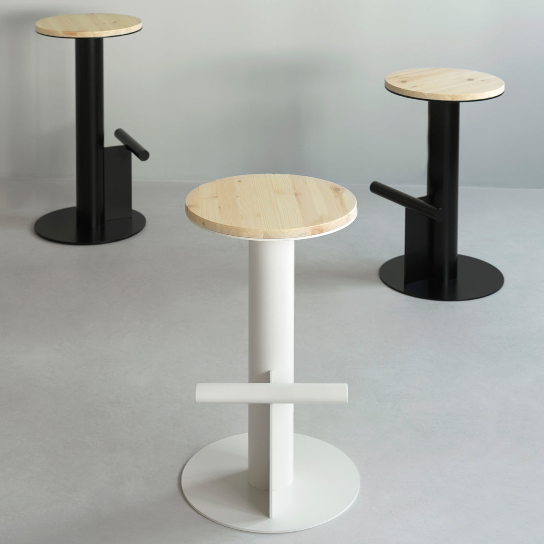The Pole Barstool is a characterful design full of contrasting geometric elements. A powder-coated steel tube with a smaller tube as a foot piece forms the base, while a circular plate made of solid pine acts as a seat. The Pole Barstool is available in two different heights of 65 cm or 75 cm and in a number of different color combinations.