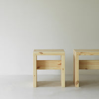 The Stretch collection is made from full-length pine planks. The minimalist design consists of a simple construction without superfluous details and focuses on the beauty of the natural pine material. Stretch Bench is available in three different sizes, from a small stool size to a longer bench of 200 cm.