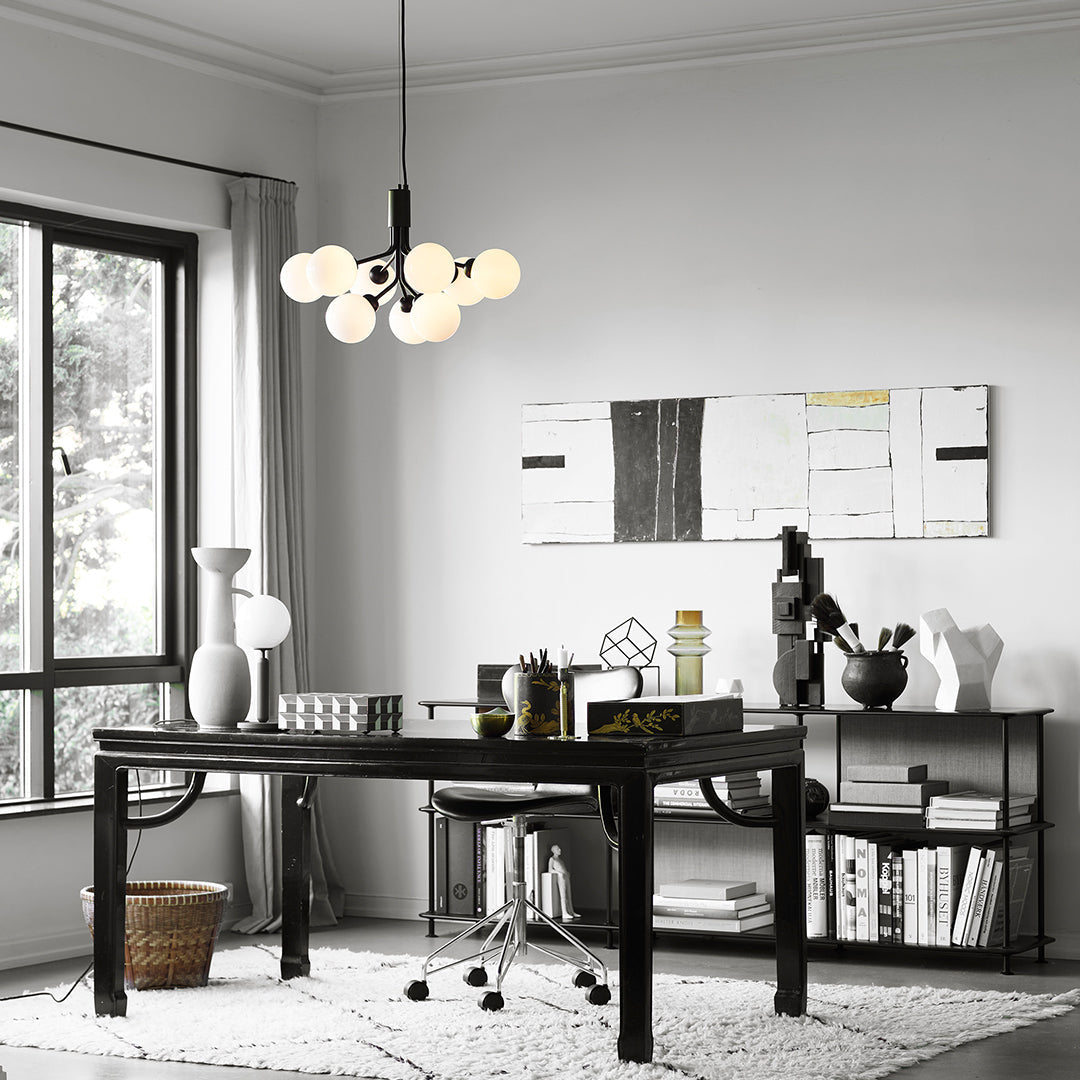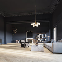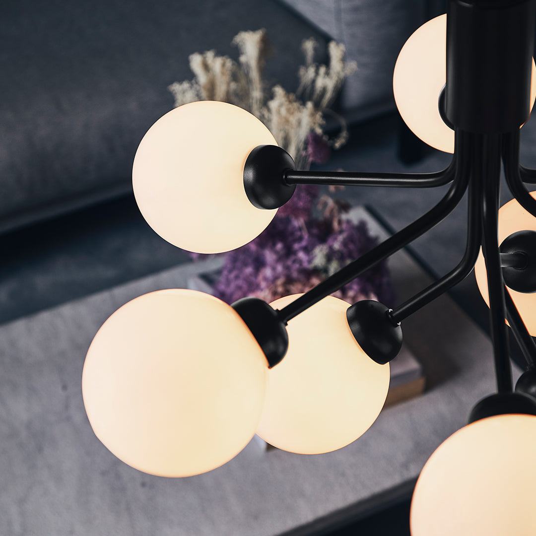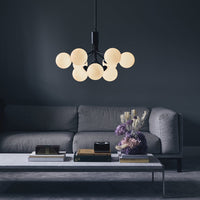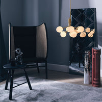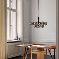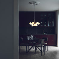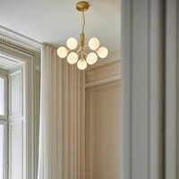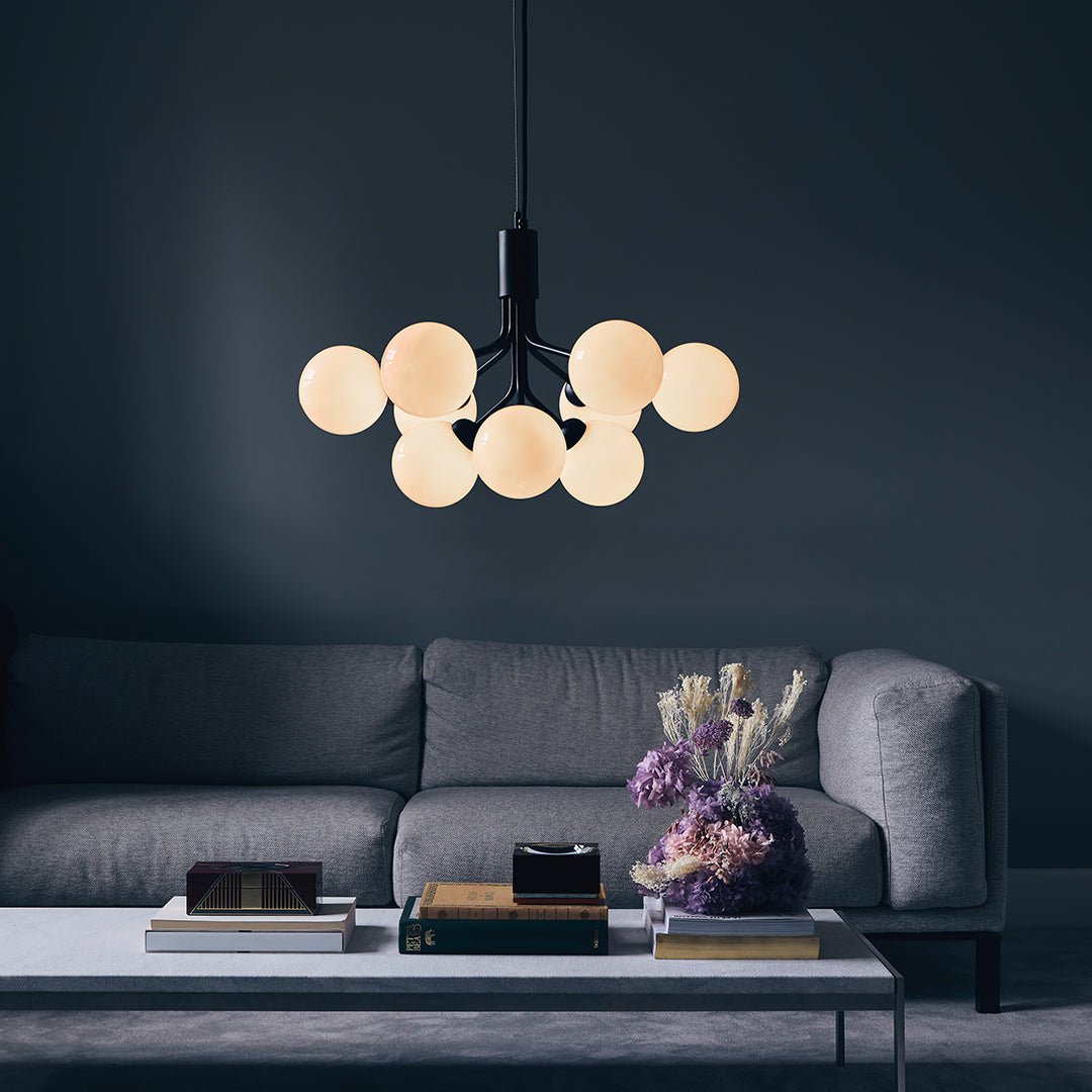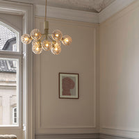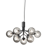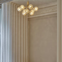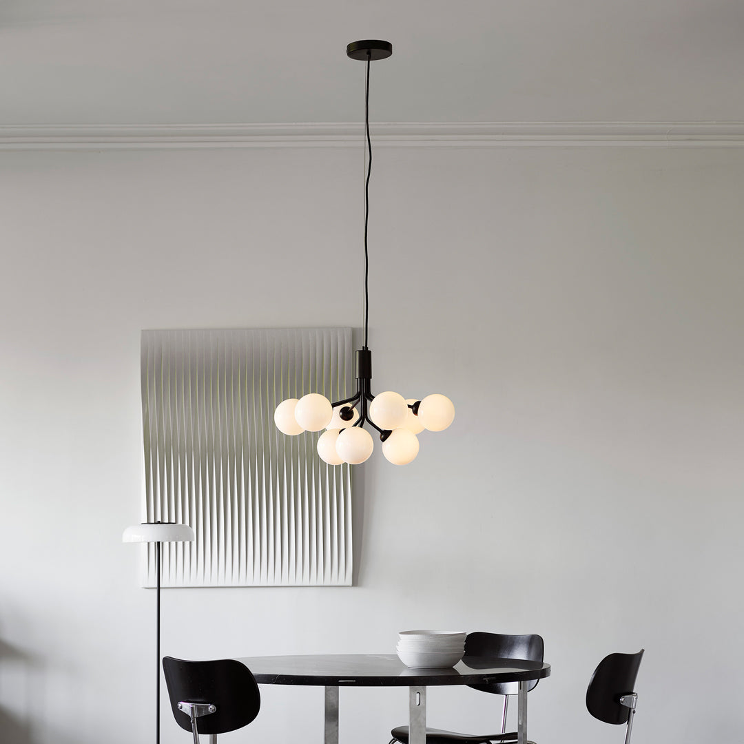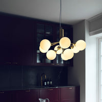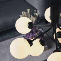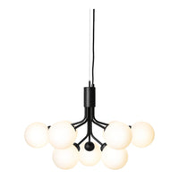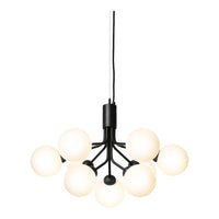 Modern chandelier inspired by umbellifer flowers. Apiales 9 Ceiling unfolds its 9 metal arms from a special produced canopy, and the branched stalks are capped with mouth-blown glass globes. Add sensuous lighting to the home with Apiales 9 Ceiling.