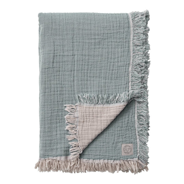 Designed by Space Copenhagen, this blanket brings comfort and charm to any room. Composed of three layers of fine woven cotton, these are linked together with a slim stitch that gives a crinkled effect. This relaxed feel is further accentuated by raw selvedge that lines the throw's edges. Whether it's used as a bedspread or draped over an armchair, this is a multipurpose piece with a homey, wholesome aesthetic, and differing shades on the front and backside mean it can be switched to suit its environment. It is available in four colors: Cloud & Milk, Cloud & Blue, Cloud & Burgundy, and Cloud & Slate.