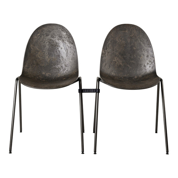 Eternity shell is made of Mater Circular Materials. An innovative technology allows us to upcycle fiber-based waste materials with recycled plastic waste. Eternity shell is made of 70% industrial plastic waste from Grohe mixed with 30% Coffee Been waste. The Chair itself is a very comfortable, functional stackable chair with industrial and sculptural features. The chair has a rounded back and seat. Eternity is designed for disassembly, meaning that the design allows each component in its purest form to upcycle into new production circles. Durable for both private and public use.