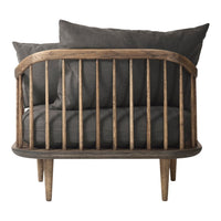 At the heart of the design is a meticulously handcrafted frame of solid oak, available in either white oiled or smoked oiled finish, featuring a thoughtfully slatted backrest that pays homage to traditional Danish furniture craftsmanship. The chair's organic silhouette (34.3" W x 31.5" D x 27" H) creates an inviting presence while maintaining a light, sculptural aesthetic that complements modern interiors.