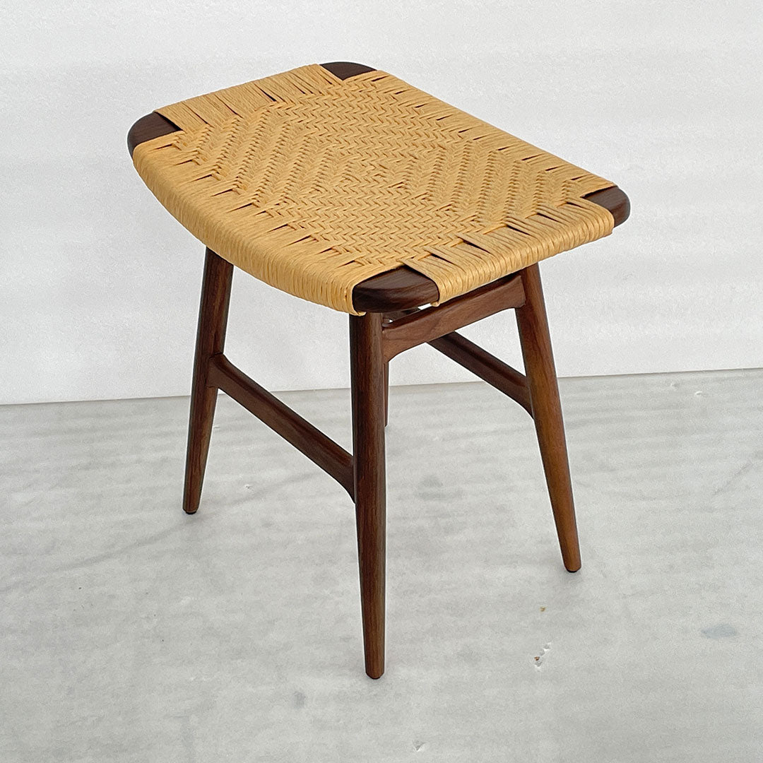 Freja is a collection of stools and bench that comes out of a wish to create sculptural furniture with the soothing visual appeal of Scandinavian furniture making traditions and a Japanese mode of expression. The archetypal furniture making principles of static and ornament converge to give Freja its elegant, yet simple character. Seen from different angles legs and aprons optically interweave to form a trellis, the seat floating lightly with either woven paper cord or leather as only decorative feature.