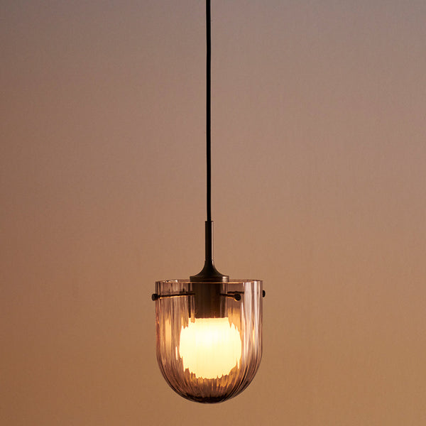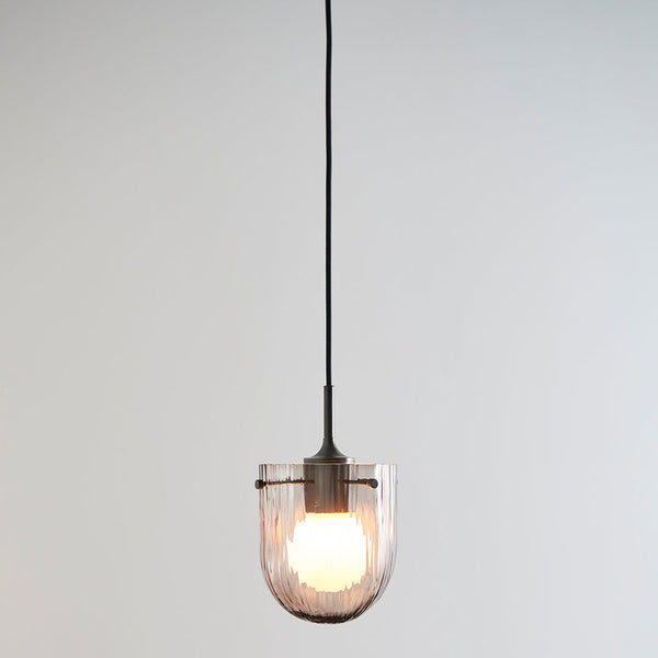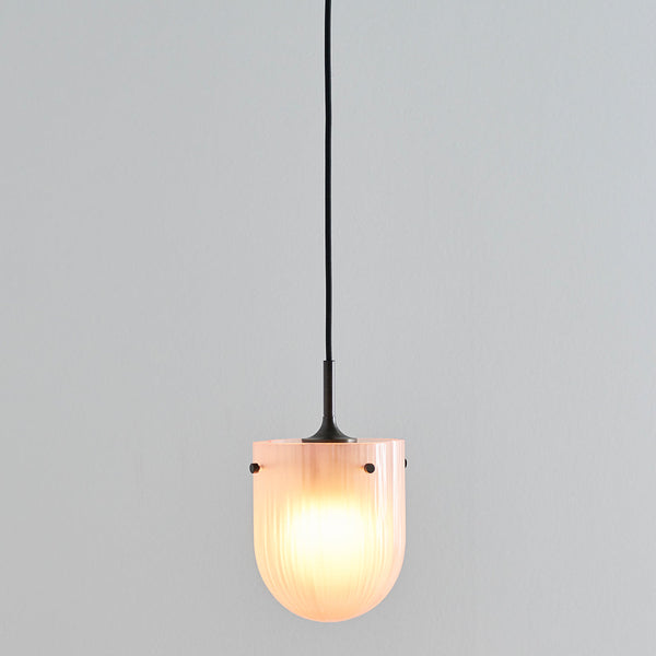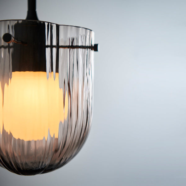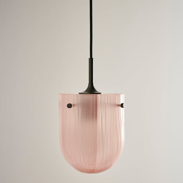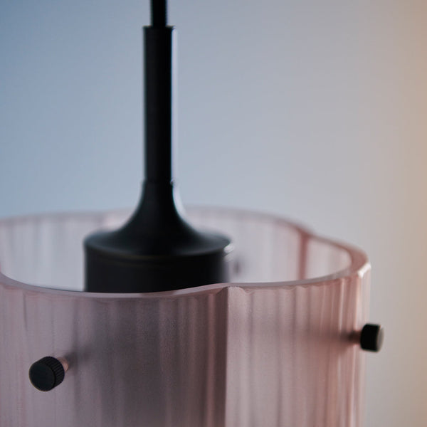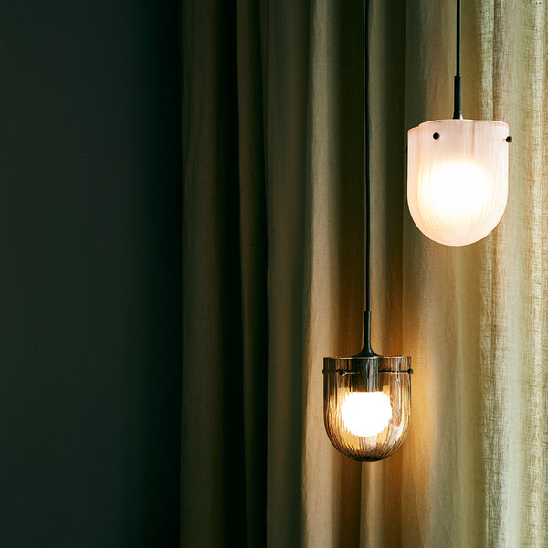 The Seine Collection by Space Copenhagen was inspired by the behavior of light in moving water, an effect that was captured through the use of patterned mouth-blown glass. The collection comprises of a Table Lamp, Ceiling Lamp, and Pendant, each of can be configured with a shade in Smoke, a lightly tinted translucent glass which reveals the inner structure of the lamp, or Coral, where the interior of the shade has been sand-blasted to create a clouded effect. Each Seine lamp draws on the power of glass to soften, layer, and blur light, creating a dreamy a reflective ambiance.