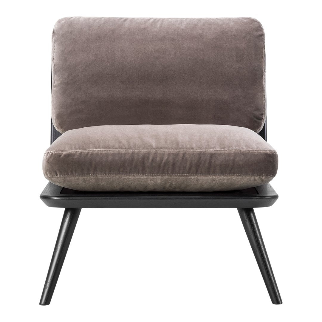 Spine Lounge Petit is a light lounge chair for private homes or open lounge areas. The generous use of materials is balanced by its discreet design. The accented detailing on the wooden back makes the chair as beautiful standing mid-room as it is against a wall. The cushions come with optional Velcro fixing.