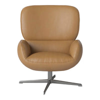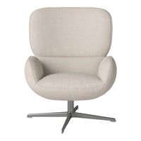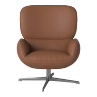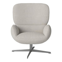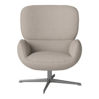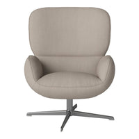 Combining luxurious comfort with a bold silhouette, the generous form of the Ripon armchair offers exceptional support with an oversized headrest. Featuring an innovative return swivel function to ensure it always looks neat in your space. With a smooth, stepless adjustment mechanism and a hidden handle for reclining, the Ripon armchair invites you to sink into its generous form and raise your legs on the accompanying Ripon footstool. Tailor-make your own Ripon chair in your favorite luxury fabric upholstery or traceable leather and choose between two colors for the chair's leg.