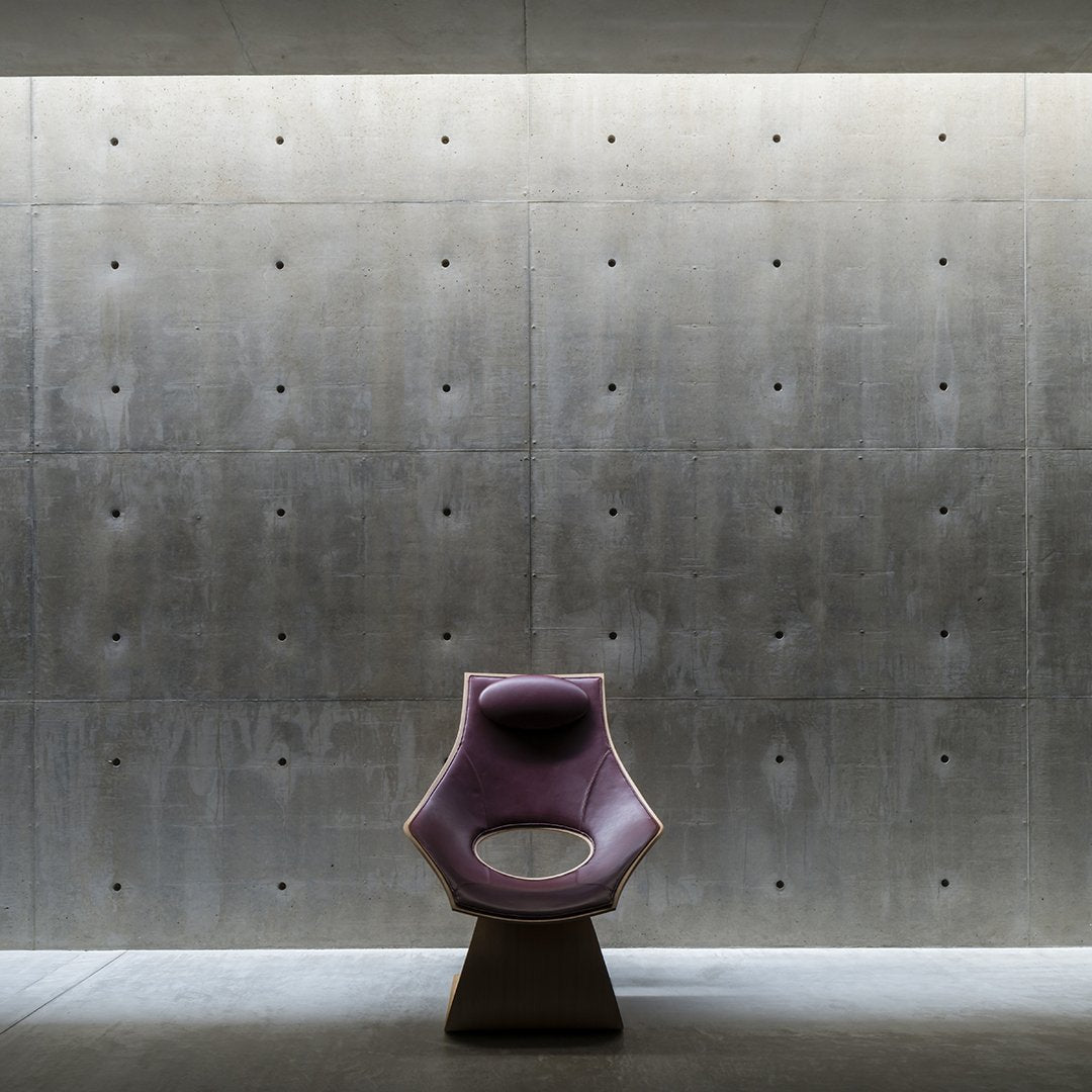 The chair's unusual floating expression naturally attracts attention. Its simple lines and exacting design are reminiscent of Tadao Ando's architecture, while the organic curves and expansive surfaces imbue the unique shape with ample space for personal reflection.