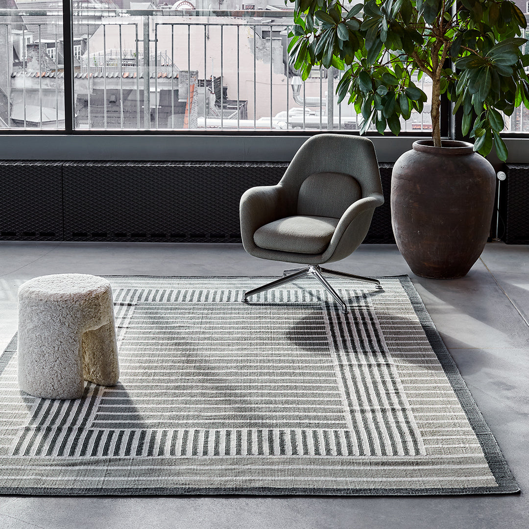 The Hemp Collection by Tanja Kirst is handwoven with Italian hemp yarn. Each thread consists of 50 thin threads spun together and dyed in bio color. The collection is part of an ongoing project investigating how the familiar hemp plant can be transformed into durable and sustainable woven textiles. The fact that hemp requires little water, can be cultivated without fertilizer and improves soil structure and adds nutrients as it grows – makes the hemp plant important in the aim for a more sustainable textile production. Handwoven in a flat weave construction with color and weft effect.