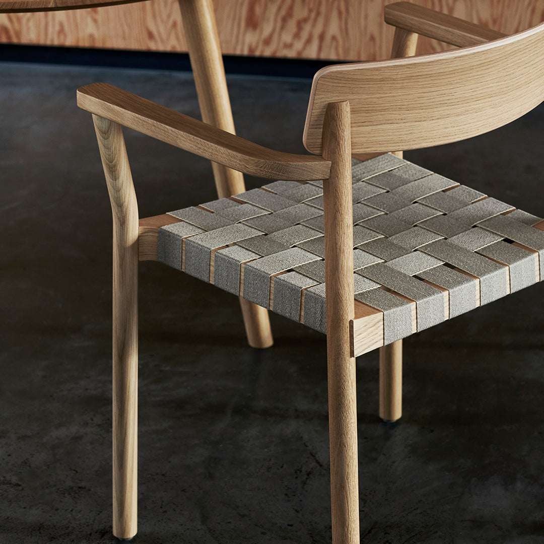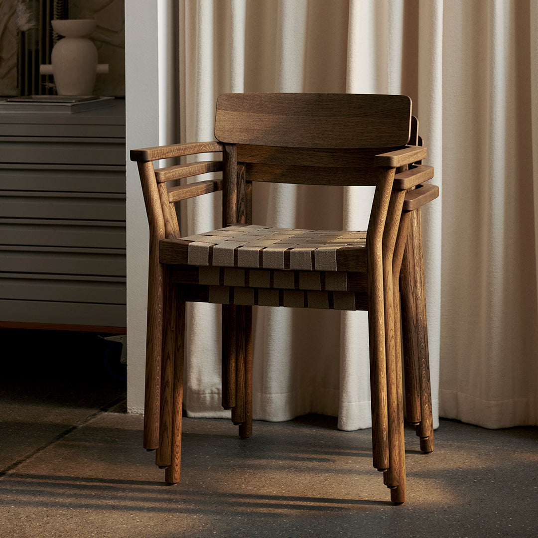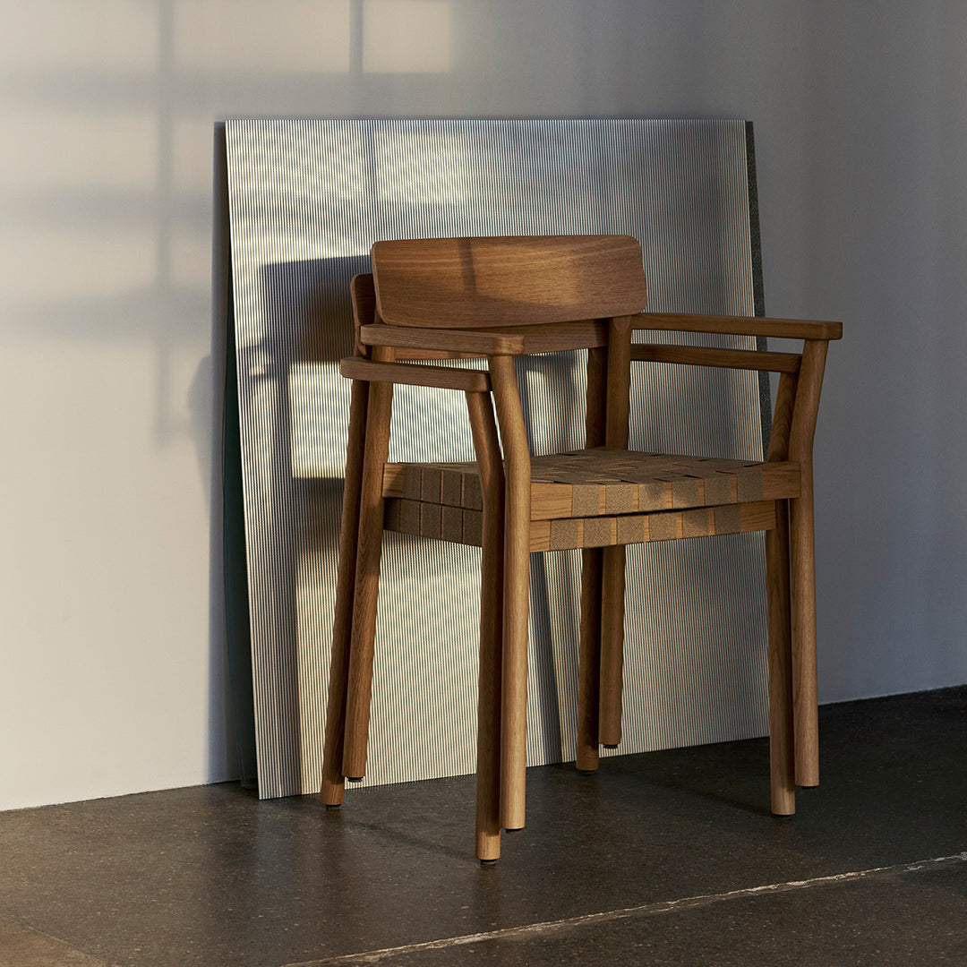 Named after the Betty Nansen theatre in Copenhagen, this armchair’s sturdy frame is crafted from lacquered oak. The webbed seat – whose straps are made from natural linen fibres and woven by hand – offers a soft, cushioned base. The Betty armchair is available in solid wood or wood with webbing.