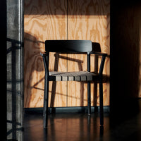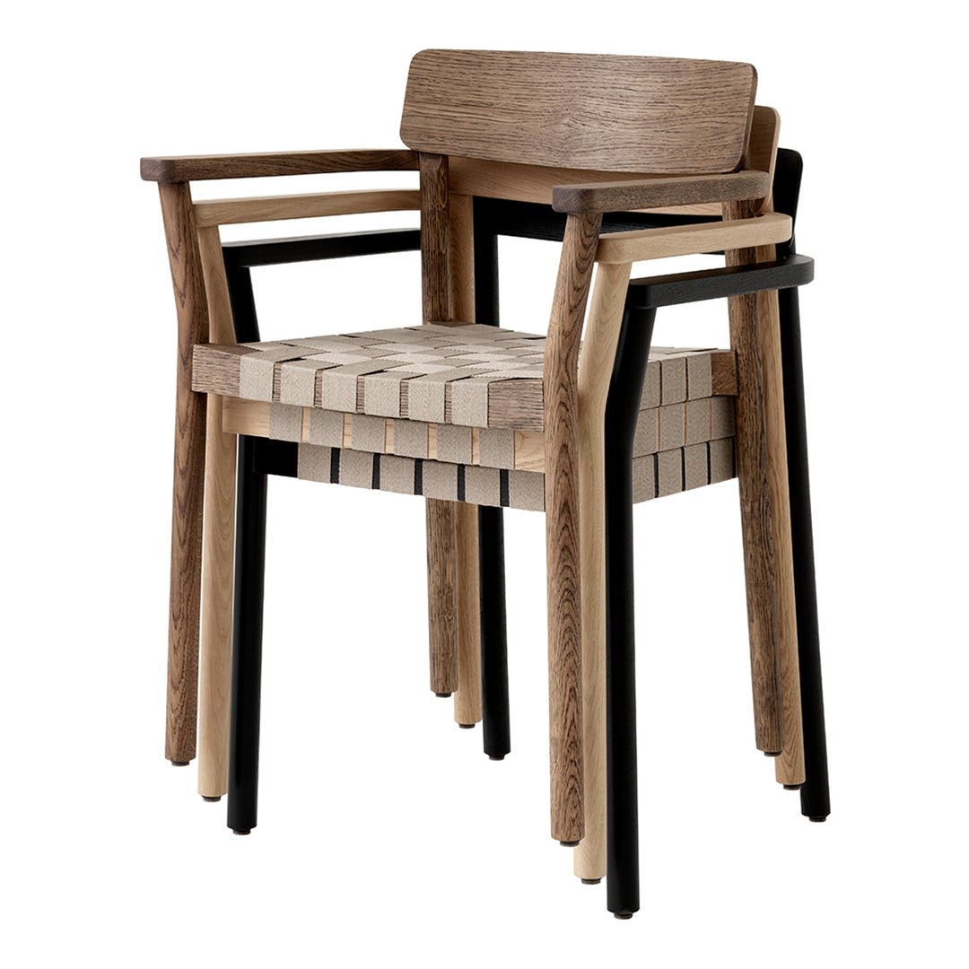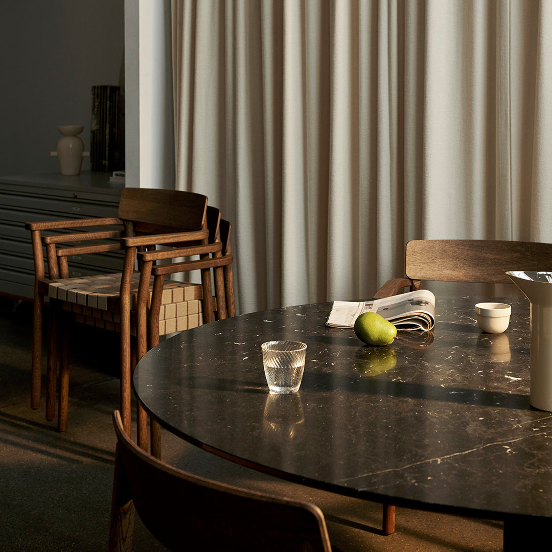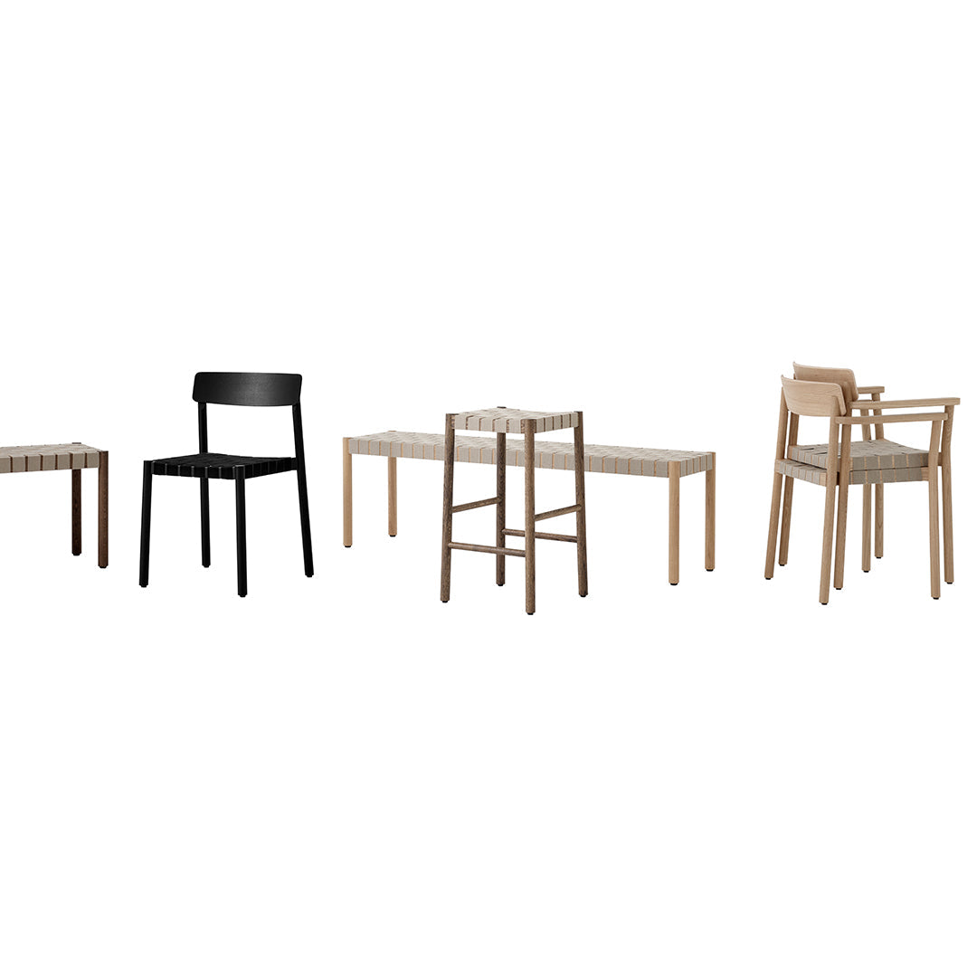 Named after the Betty Nansen theatre in Copenhagen, this armchair’s sturdy frame is crafted from lacquered oak. The webbed seat – whose straps are made from natural linen fibres and woven by hand – offers a soft, cushioned base. The Betty armchair is available in solid wood or wood with webbing.