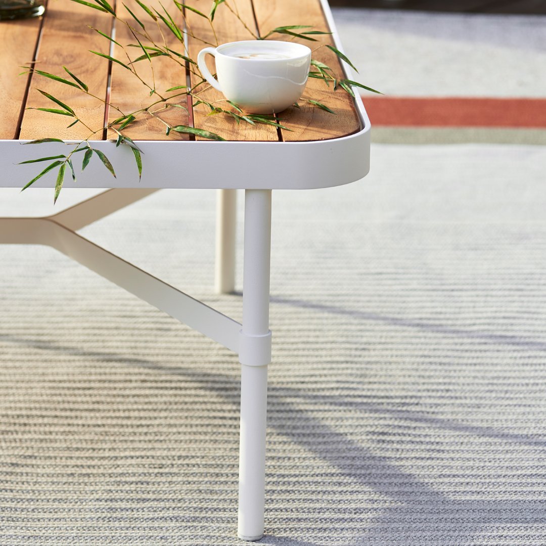 This modular lounge group is inherently versatile. With more than seven modules, a lounge chair and a separate daybed. Designed to stand out and yet blend in, no matter whether you live in the countryside or the city. The teak and the durable aluminium frame ensure it can be placed in a variety of settings and still retain its good looks after years of enjoyment. To complement the lounge group, a choice of coffee tables is available with ceramic and teak tops.
