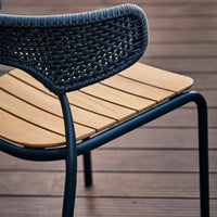 This dining concept offers superior comfort and unique details that set the scene for special moments with friends, family or some peaceful moments alone. The dining chair has a unique aluminium frame, with a teak seat and a handwoven back made of high-quality rope with a soft yet durable surface. Comes in two colour options, as do the matching dining tables.