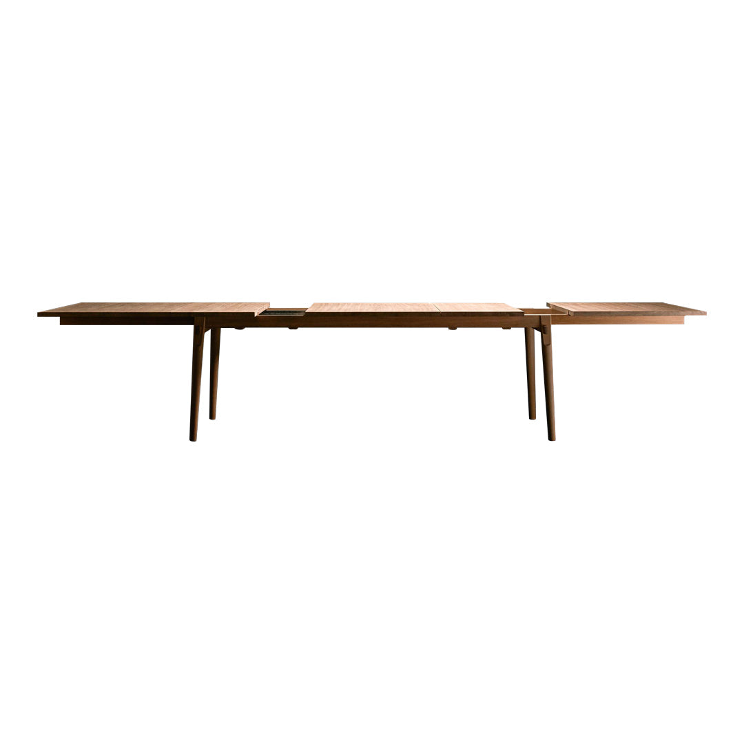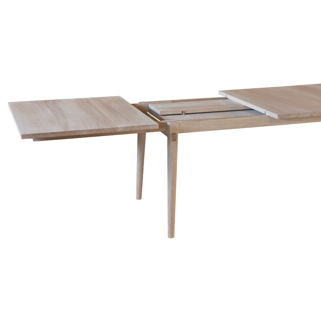 The highest possible flexibility is achieved by the 4 extension leaves that are made in two different widths. This means that pp850 can be extended from the initial 222cm to a maximum of 366cm in 26cm increments.
