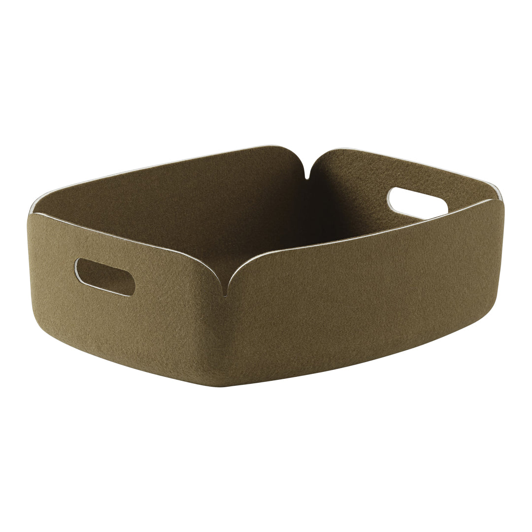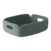 Made from recycled plastic bottle fibers transformed into soft polymer felt, the Muuto Restore Tray showcases the same eco-conscious construction as Tolvanen's celebrated basket series. The shallow rectangular form creates an ideal catch-all for desktop essentials like pens, business cards, keys, or jewelry, while the gentle raised edges prevent items from sliding while maintaining easy access to contents.